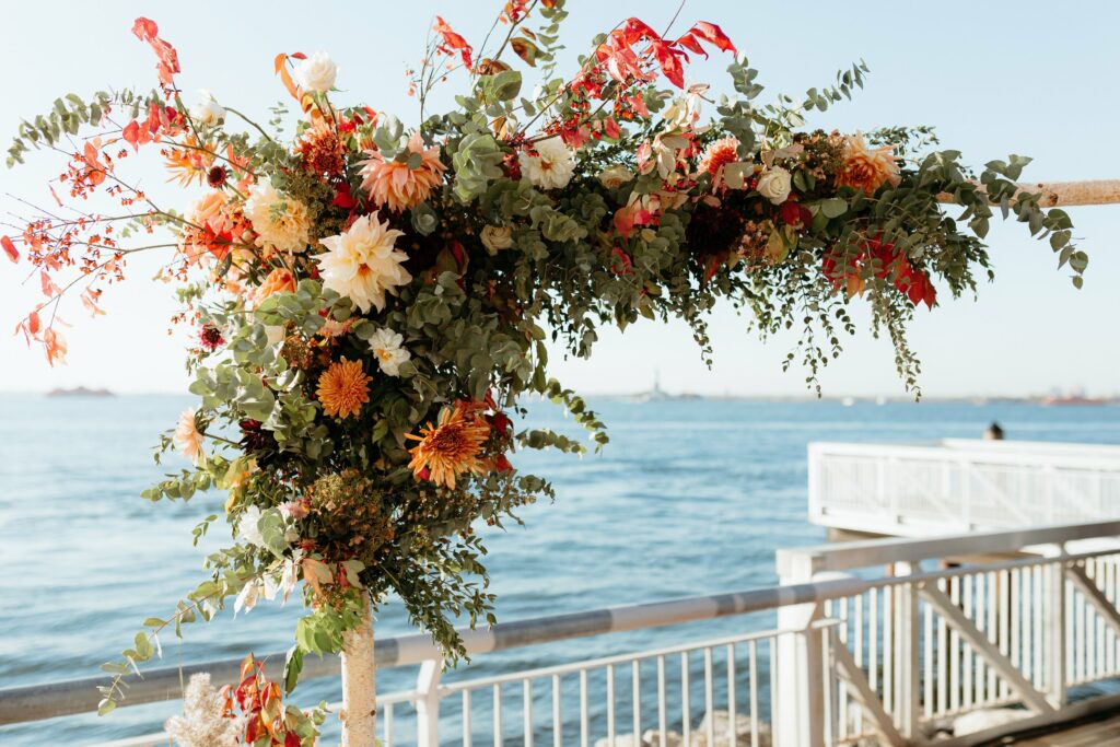 Using them in an installation with a water source is a much safer way to use these without fear of them melting. This October arch featured Cafe au Laits which remained hydrated throughout the ceremony via hidden water cups that we buried in the design!