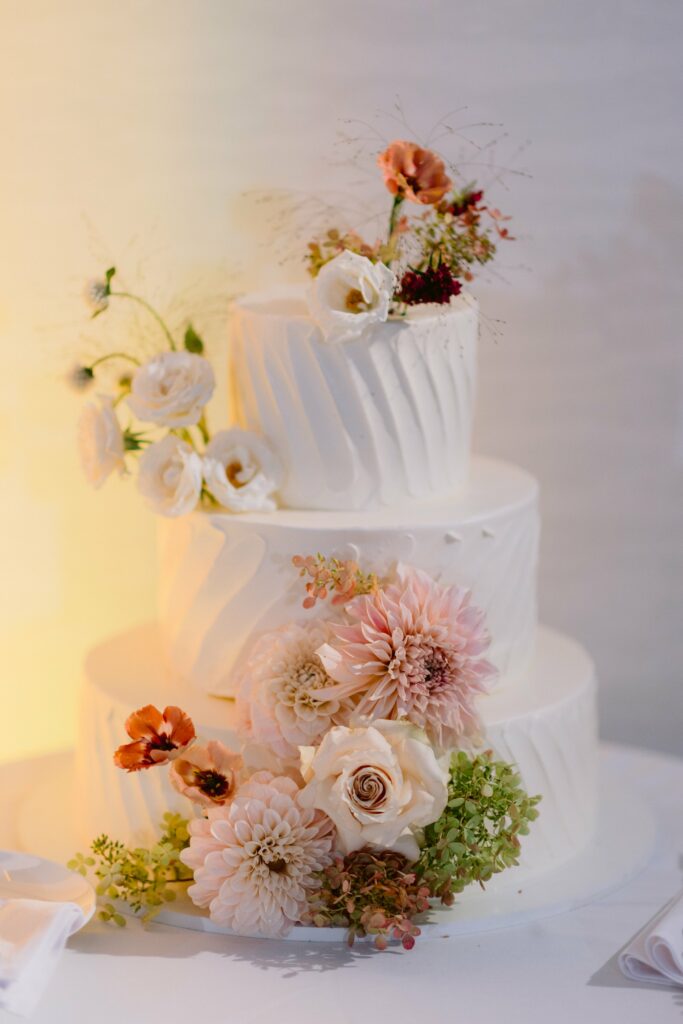 Peep the top dahlia on this cake design- a cooler-toned Cafe Au Lait that worked perfectly for this palette.